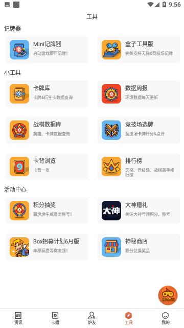炉石传说盒子手机版是专为炉石传说玩家打造的游戏资源软件,提供各种游戏相关的第一手资讯。玩家可以在软件中获取最新的游戏资讯,了解各种卡组和阵容的玩法推荐。此外,玩家还可以在软件中自由交流,与其他玩家分享心得和最新资讯。炉石传说掌游宝还提供玩家的游戏信息展示,让玩家更好地了解自己在游戏中的表现。