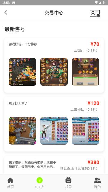 1折游戏盒是一款非常好用的游戏交易软件,这款软件支持玩家间交易,无需担心中间商的干扰,完善的评分系统,让用户更准确地了解卖家信息,个性化推送,跟随自己的趣味和需求找到有趣的商品,高效的咨询工具箱,包括同步通信、邮件和语音咨询等。