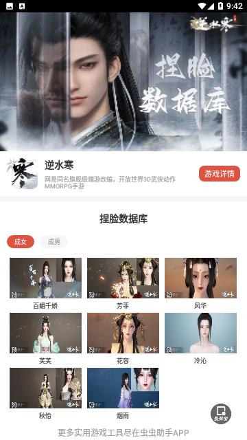 1、虫虫助手逆水寒捏脸工具支持多人参与捏脸,打造出多种搭配效果;