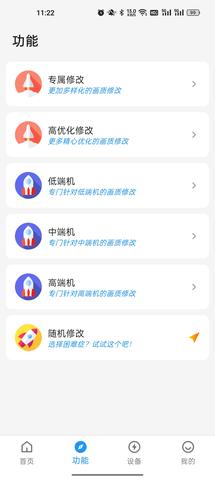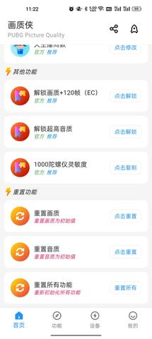 画质侠针对那些懒人玩家也有快捷修改功能,从渣机画质、流畅画质、高清画质、超高清画质、主播同款画质、120帧画质当中选择一个即可。软件还可以检测你的手机信息状况,根据你的手机配置来智能推荐设置,同时能够支持市场上的各种手机机型,用户们不需要担心自己手机不适配。