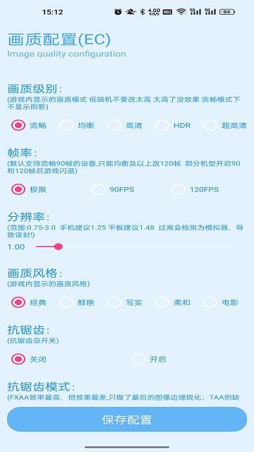 青辰画质助手App是一款非常不错的游戏画质优化软件,这款软件能够帮助大家来自行更改游戏画面细节,来提升大家的游戏画质,给你一个更优质的视觉效果体验,内置了多种图像质量预设,用户可以根据不同游戏和场景的需求来挑选合适的画质使用。