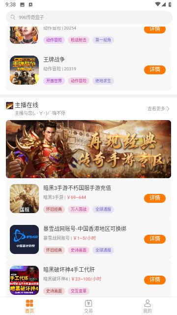 勇士游戏盒子是一款十分不错的游戏盒子,这款软件里面不仅有大量的游戏可以游玩,还有超多的游戏账号售卖与购买,用户能够在软件中能够找到超多自己喜欢的游戏,所有的游戏用户可以下载,还有游戏用户可以直接点击游玩,软件中还有各种游戏福利可以在这里领取。