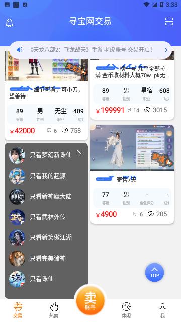 寻宝网账号交易官网版为玩家提供了方便、安全的交易环境,有助于玩家之间进行游戏账号资源的交换和购买。在选择使用游戏账号交易软件时,请务必确保软件的正规性和安全性,以保障您的个人信息和账号资源。有需要的朋友不要错过,快来下载试试吧。