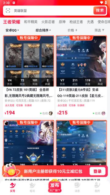 4、在线卖号,用户可以将自己的各样游戏账号发布到软件上,进行在线卖号。