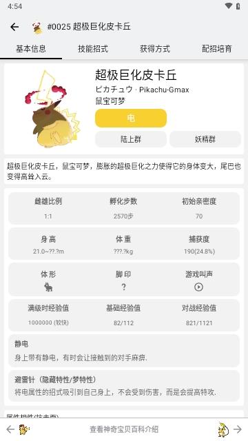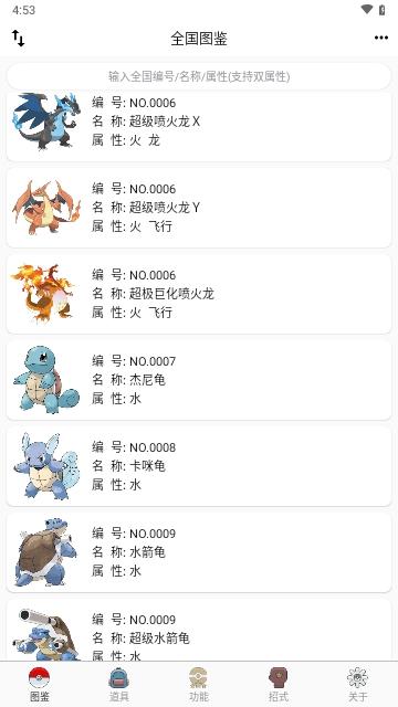 1、全国图鉴:包含宝可梦的基本信息,但是进化链和招式还在优化中;