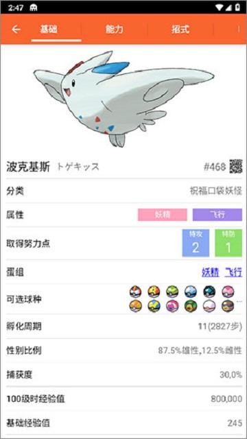 4、软件对于每一个精灵的世代、属性、编号、特性都有详细的记录。