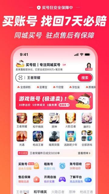 买号狂是一款专业的游戏账号交易平台,它为用户提供了多种游戏交易服务,玩家不仅能在这里进行游戏账号的买卖交易,还能在这里进行游戏道具交易,非常的方便、快捷,还为玩家提供非常多的保障措施,让玩家能够在平台上放心交易。感兴趣的小伙伴快来本站下载体验吧。