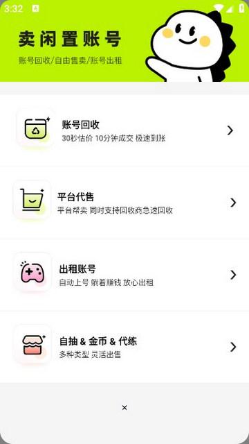 2、卖号,闲置游戏帐号一键上架,脱坑帐号极速变现,千万游戏玩家帐号交易选择