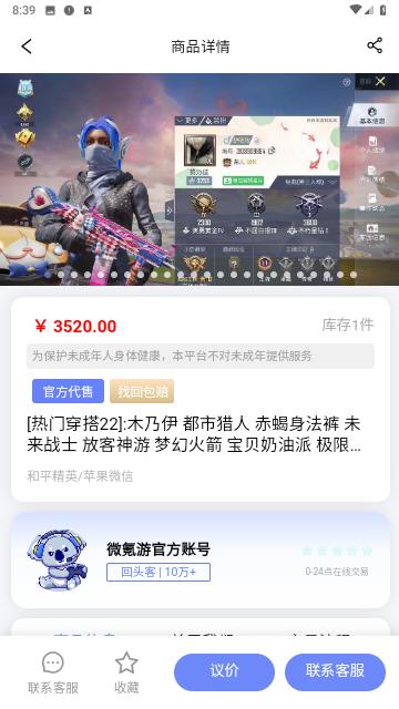 微氪游是一款十分不错的账号交易软件,这款软件里面有非常多的游戏账号,各种各样的游戏账号用户都能够在这找到,并且每一个账号里面都有十分丰富的装备,游戏账号的交易十分的迅速,用户能够一键完成,绝对的物超所值,软件客服24小时在线能够为用户随时解决各种难题。