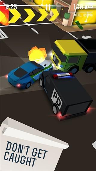 游戏画面比较有特点,采用了3D抽象风格制作,城市建筑与车辆全部都是轮廓分明的纸壳模型,飙车过程充满了激情,特别是转弯漂移带起的一阵尘埃给人一种极速驾驶的感觉,再加上街道上车来车往十分拥堵,仿佛随时会被后面警车所追上,给人一种紧迫感,让玩家们更加专注观察道路的可逃亡路线。