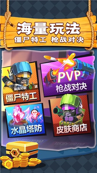 2、所有玩家都能够上手这款对抗僵尸的手游,整个游戏内容很多样,开始的挑战也都十分的精彩,一起来升级武器来对抗所有的僵尸。