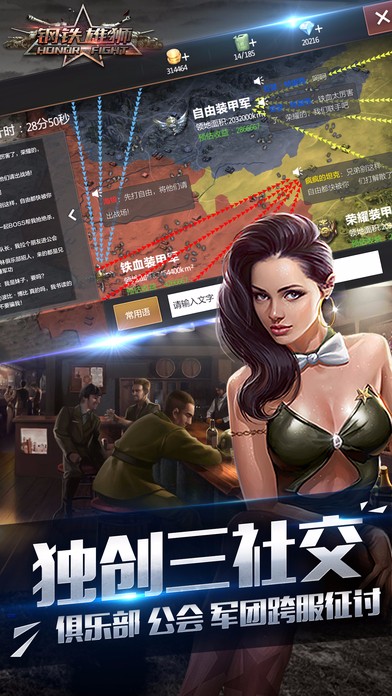 摒弃传统回合制以及单一的推图玩法,加入军团作战,世界版图势力扩张,当己方军团的军旗插在地图的那一刻,玩家会深刻体会集体作战的荣耀感。