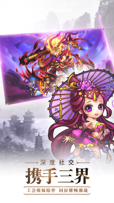 打破传统西游故事,我们引入了三国中的张飞、关羽、赵云、刘备等实力名将,也有姜子牙、雷震子等上古封神人物。当然,取经的漫漫长路,我们也将妲己、貂蝉、聂小倩、白素贞等一众仙女招致麾下,与你一同开启这新奇的西游取经路。