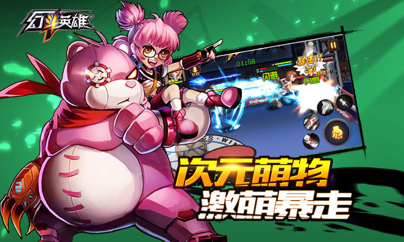 不仅如此,玩家还可以自由搭配英雄组合进行格斗。游戏中拥有数量众多的二次元英雄,他们个个Q萌灵动,堪称是经典中的经典,承载着不少小伙伴曾经的美好回忆,更拥有着花样百出的格斗绝技;