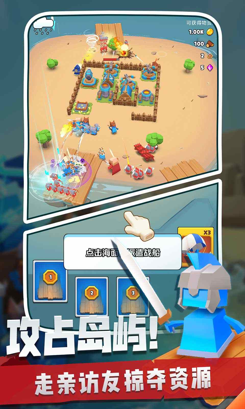 游戏攻击海岛的模式非常新颖。卡通风格的海岛竞赛游戏。