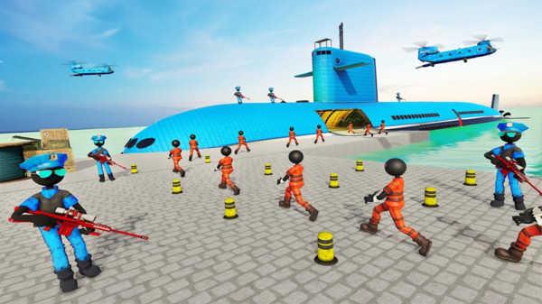 2、火柴人警察运输囚犯相信自己,有很多装备和道具,还有警察队友的护卫,这足以让你放心;