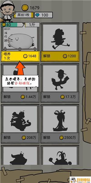 第一步:优先解锁动物进入游戏,你会获得初始的涨价猪,并且了解到最简单的养殖操作。在开始阶段,建议大家优先解锁高级动物,因为越高级的动物,收益越可观。而且,当金币可以强化高级动物时,优先强化高级动物,他们的斤数越高,收益也越高。而且二师兄的斤数还关系这解锁一些游戏内容,所以建议大家早早强化。