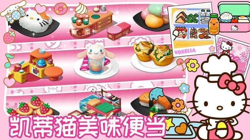 精美的游戏画面,可爱的凯蒂猫形象和各种美食图案,让玩家眼前一亮。