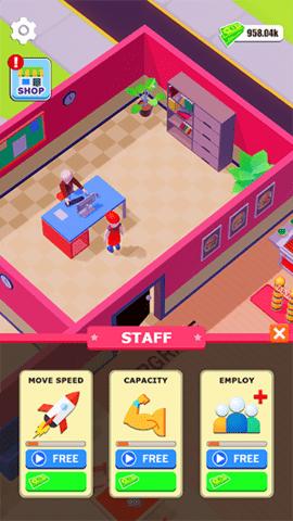 3、赚钱后当然是投资升级,去商店买海报等道具增加得分,顾客金钱滚滚而来~