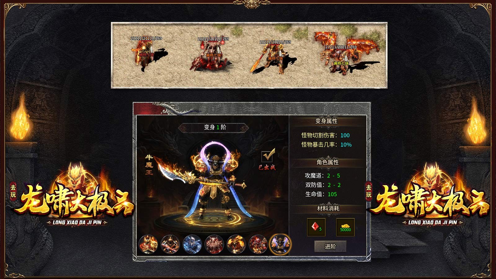 去玩龙啸大极品为玩家带来经典热血的传奇玩法,在游戏中所有的货币元宝全靠打,上线即可获得自动拾取,自动回收,交易无任何的限制,强力的装备永久保值,散人花时间即可到达终极,体验经典的传奇对决,畅玩整个传奇世界。