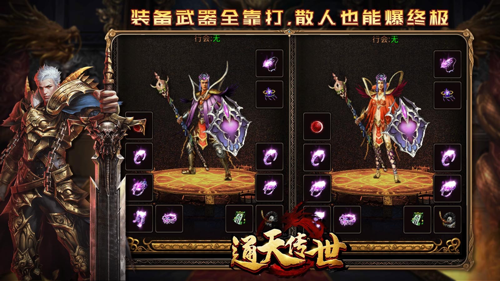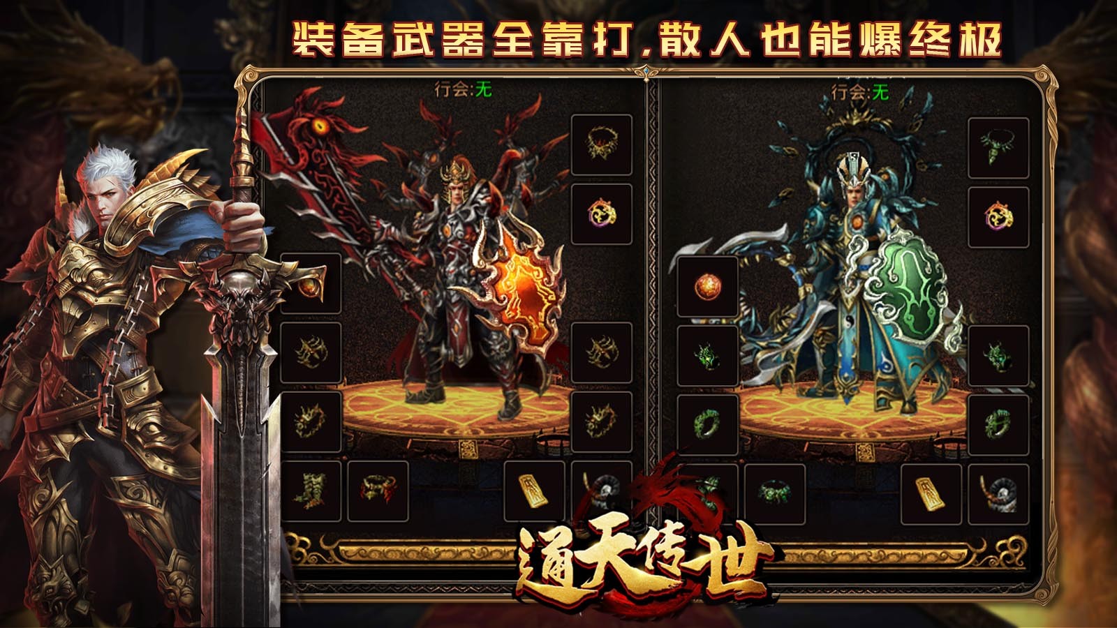 通天传世为玩家带来经典热血的传奇对决,加入到精彩的传奇世界之中,所有的区域都能够自由地展开探索,整体的掉落率相当的高,随时都能够加入到竞技对决的挑战,尽情地发挥最佳的实力,感受全屏特效的震撼感受,重温当年热血激情岁月。
