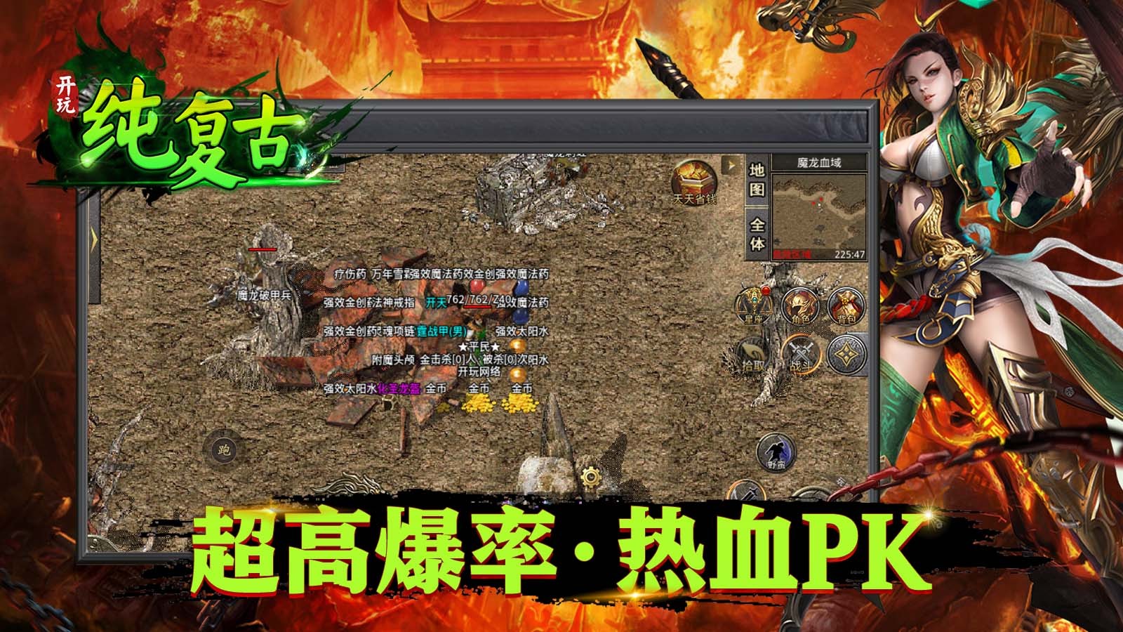 开玩纯复古为玩家带来精彩爽快的传奇玩法,在游戏中玩家将要进入复古的世界中,所有的野怪即时刷新,尽情地享受刀刀暴击的爽快体验,组队加入到世界boss的挑战之中,瓜分强力的神装道具,助你到达战斗力巅峰,一刀畅玩传奇,再创你的辉煌岁月。