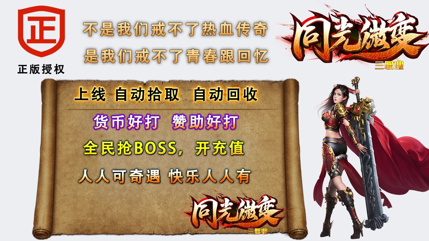 同光微变三职业为玩家带来精彩爽快的传奇玩法,在游戏中加入到庞大的传奇世界,所有的大陆和副本无限制自由探索,强力的野怪boss即时刷新,整体的掉落率相当的高,尽情地享受刀刀暴击的爽快的体验,秒怪畅玩整传奇世界。