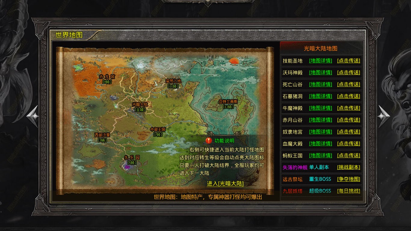 1.传承经典传奇世界,所有的野怪boss即时刷新,感受高爆热血的传奇对决,再创属于你的辉煌传奇。
