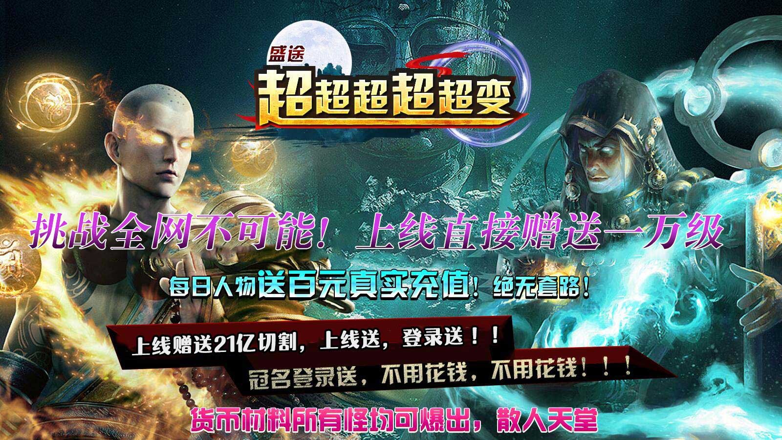 1.上线就送:21亿切割,10倍充值,自动捡物,自动回收!