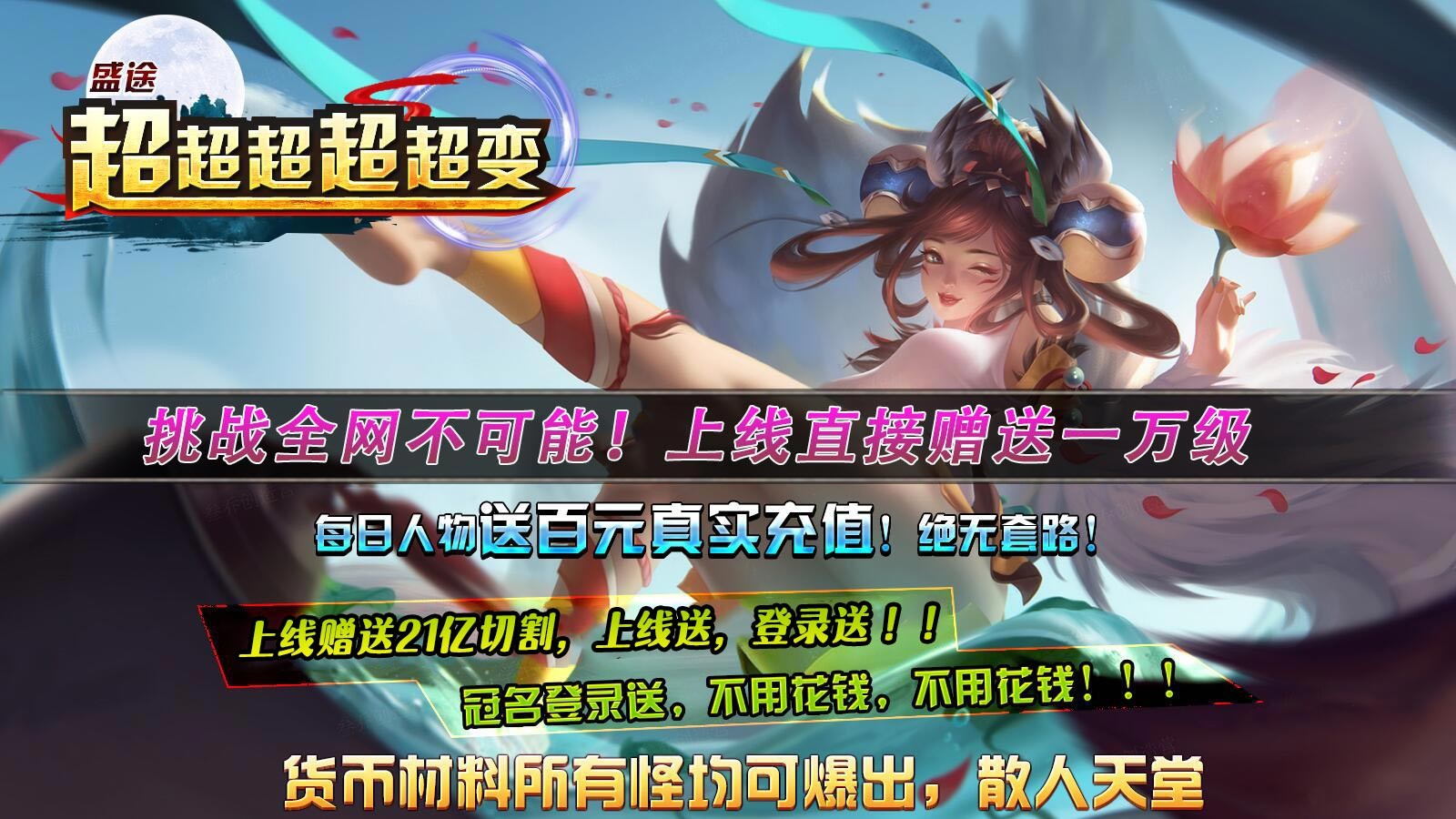 2.首充豪礼:本服免费冠名可通过登录方式免费获得,绝对的零嗑超变,白嫖万岁!