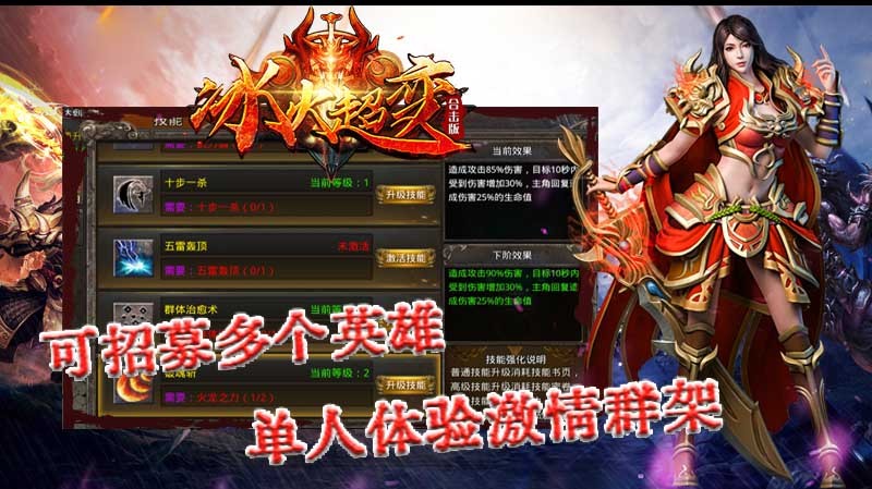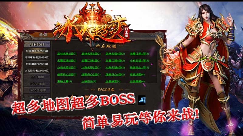 冰火超变合击版为玩家带来精彩有趣的单职业传奇玩法,游戏中所有的材料装备全靠打,四名英雄合击作战,简单易玩的操作方式,轻松的加入其中,前往不同的大陆展开征战,每次游玩都能够获得不一样的激情体验,畅享无限的精彩。