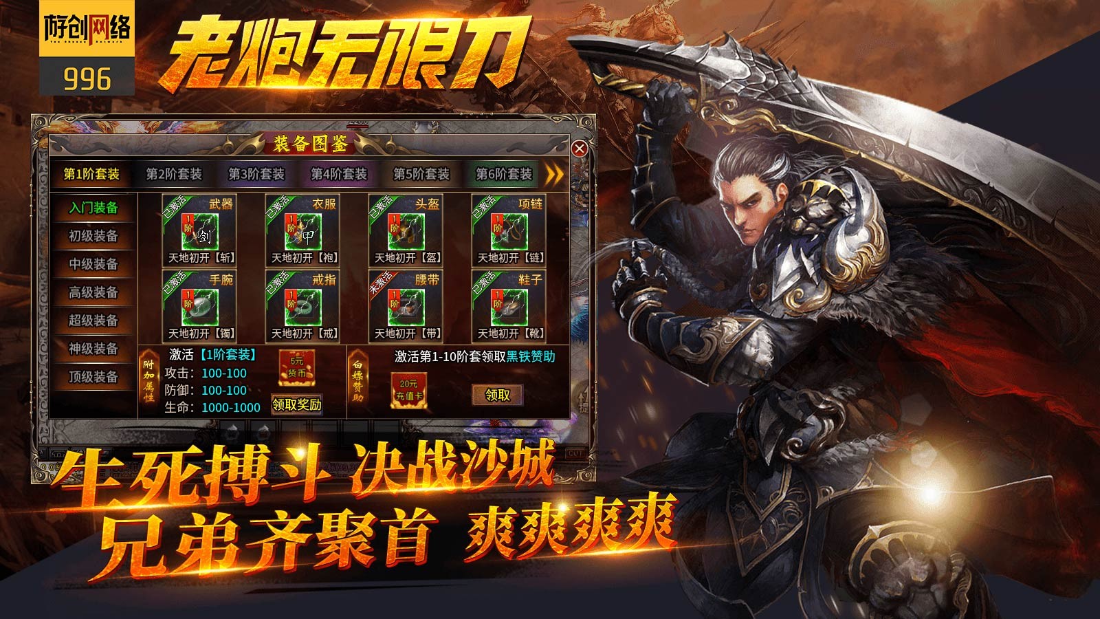 2.上线赠送各种福利,称号,百套装备,超多玩法。