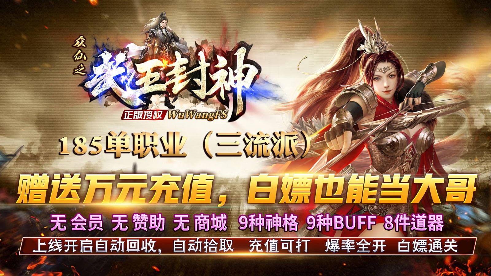 众仙之武王封神为玩家带来单职业版本的传奇玩法,在游戏中玩家将要加入到精彩的传奇世界中,上线开启自动回收拾取,整体的爆率全开,尽情地加入到刷怪打金的战斗之中,诸多强力的神装轻松爆出,助你快速到达战斗力的巅峰,书写你的霸业征途。