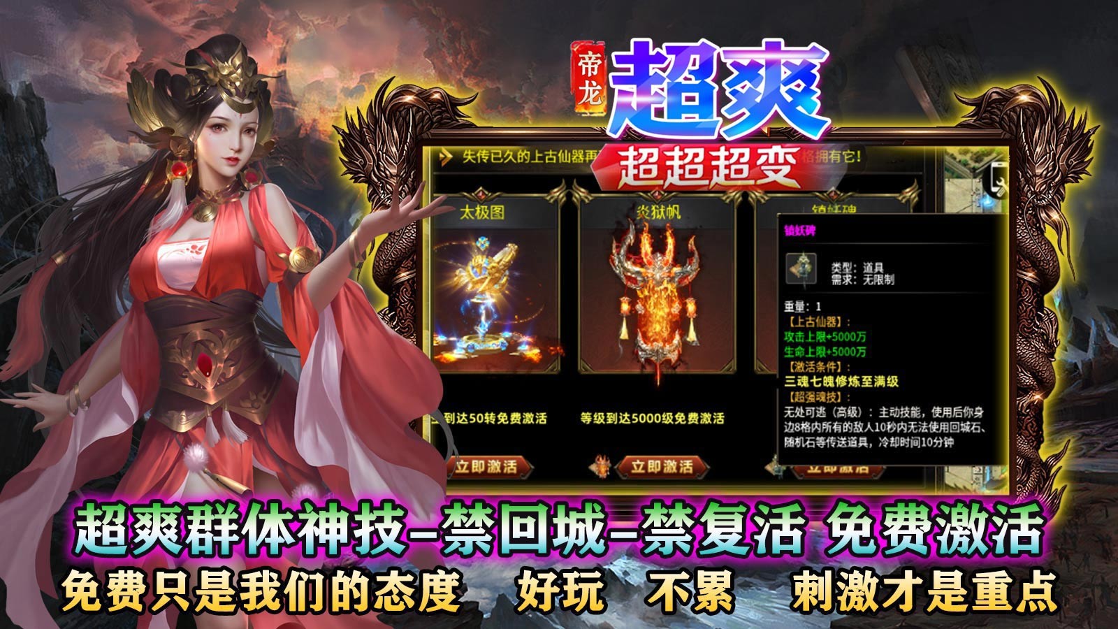 帝龙超爽超超超变这款游戏有着热血爽快的超变玩法,诸多经典的玩法都得到了完美的还原,开局即可获得满攻速,进入到精彩的传奇世界中,在历练中不断地提升自己的实力,享受遍地神装的爽快体验,开启属于你的冒险征途。