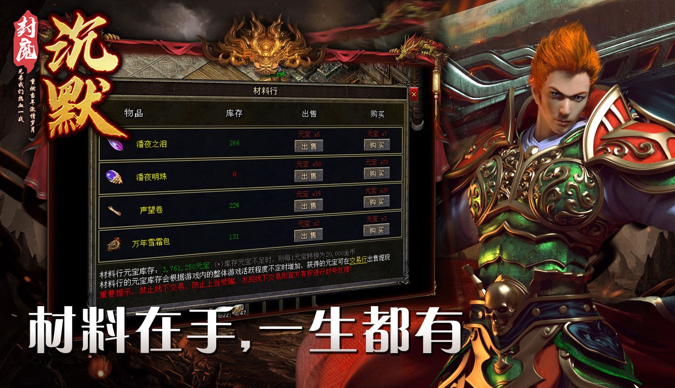 4.元宝保值、装备好打、支持白嫖、封魔品牌、值得信赖。