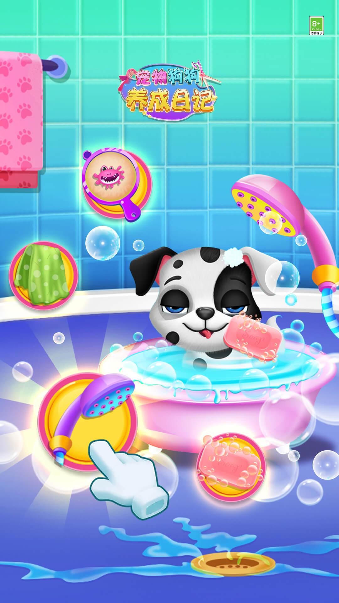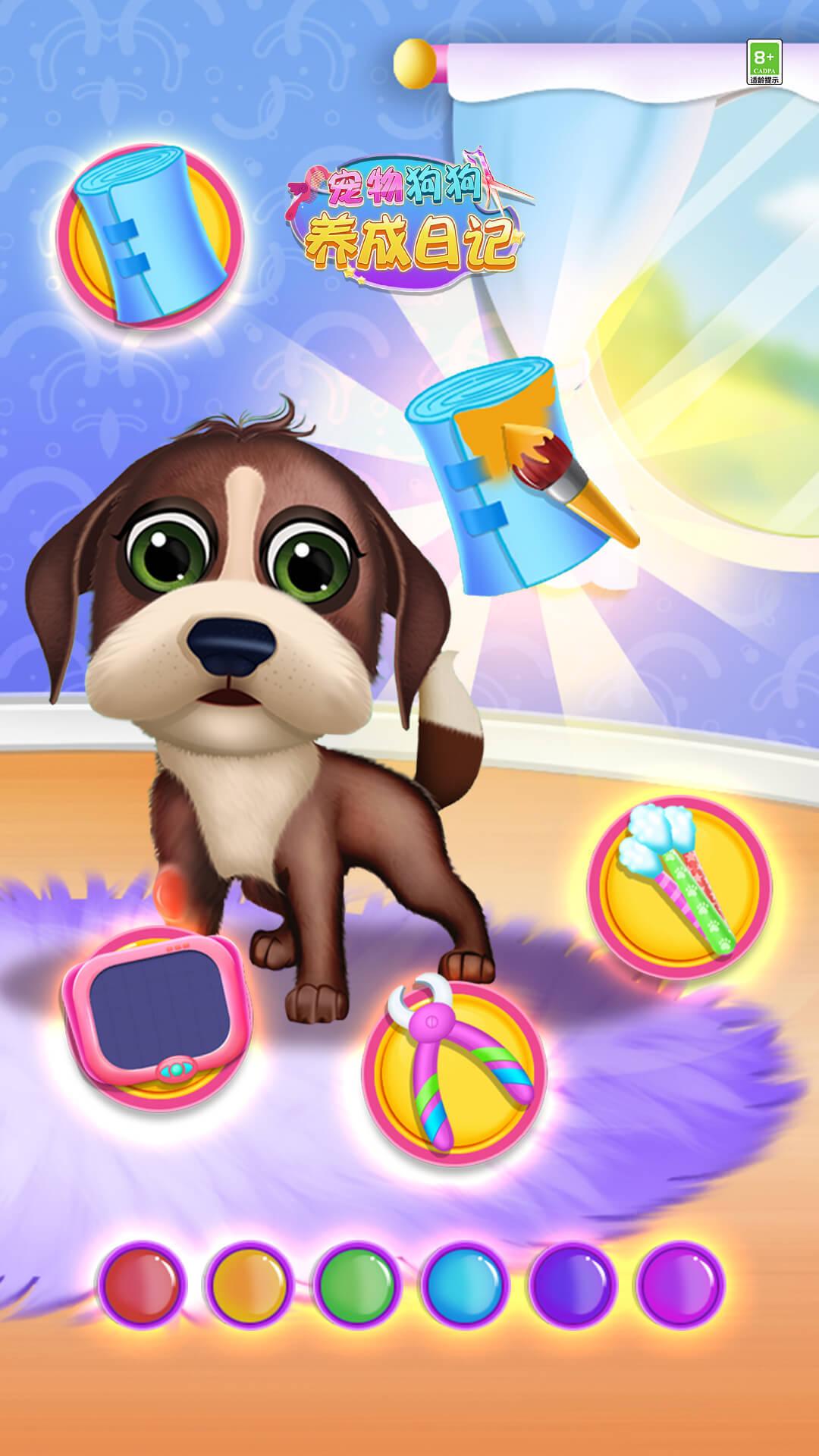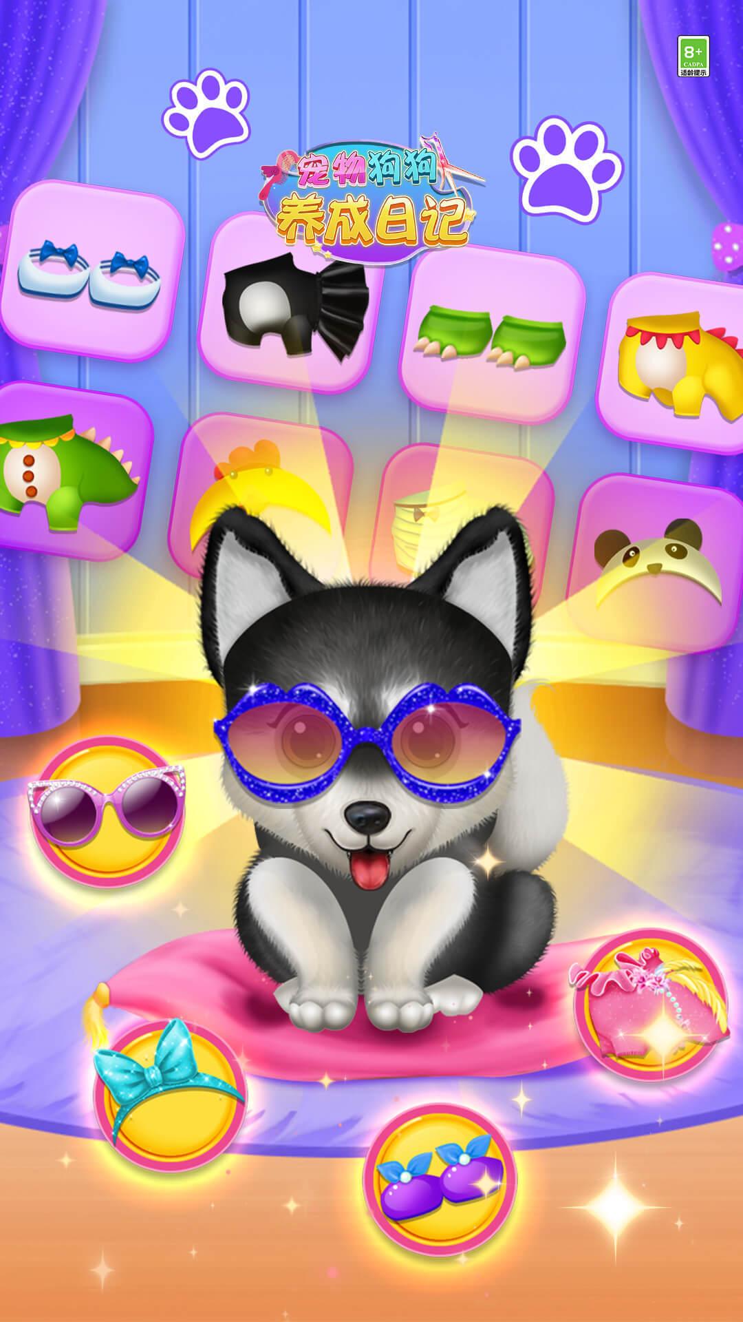 1、宠物狗狗养成日记游戏中玩家可以与宠物狗狗互动,给予它亲吻、抱抱等爱抚。