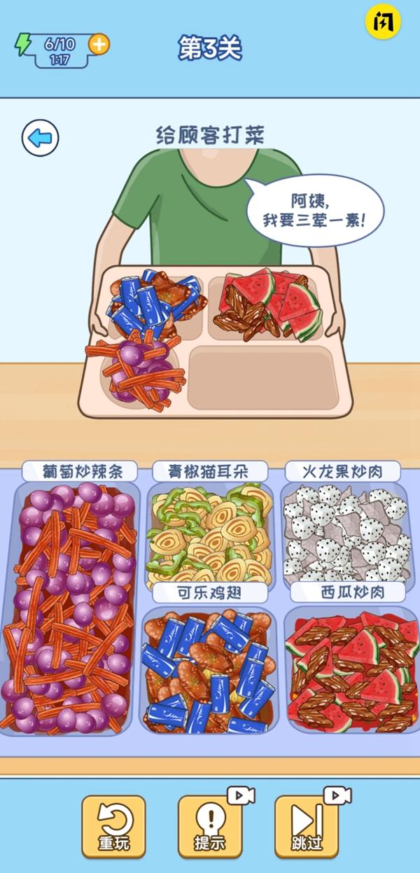 1、玩家需要扮演的角色便是食堂里的打菜员,可以是食堂、也可以是餐馆。