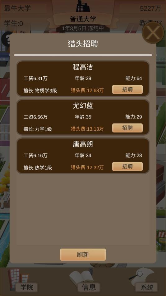 4、玩家需要用唯一的资金更好的建设学校,把学校打造成一流的学府;