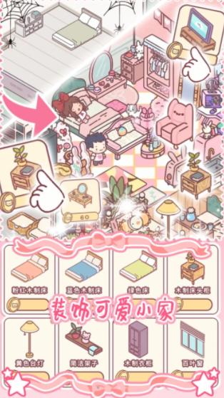1、采用的是卡通的画风,来这里打理你的小屋,与另一半享受生活。