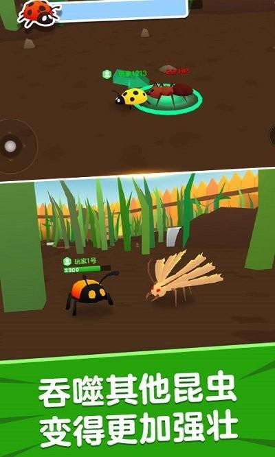 1、游戏的开局玩家会变成一直七星瓢虫,去不断寻找哪些比自己更弱小的昆虫进行吞噬,在外出时一定要小心其他强大昆虫否则你将会被吞噬。