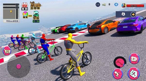 1、超级多的蜘蛛侠英雄来参与比赛,一起来驾驶摩托竞速。