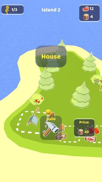1、玩家需要探索不同的海域、岛屿和资源,收集各种材料来建造自己的小岛;