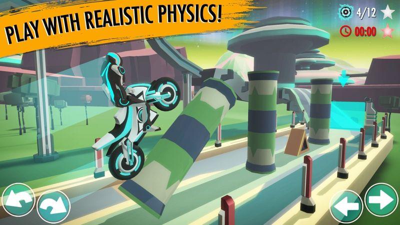 1、玩家需要通过触摸或倾斜控制设备来操控摩托车的转向和前进。