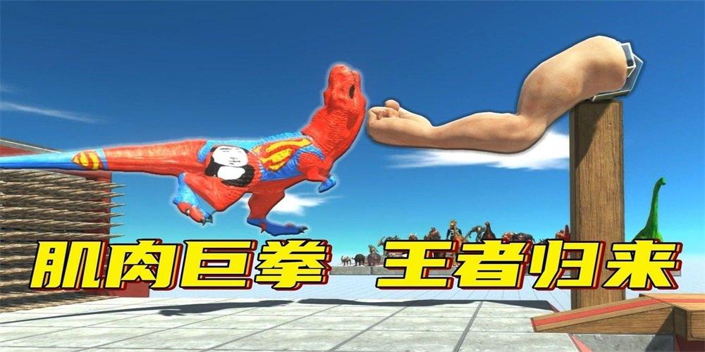 1、挥舞巨大的肌肉拳头,和众多动物们一起对战;