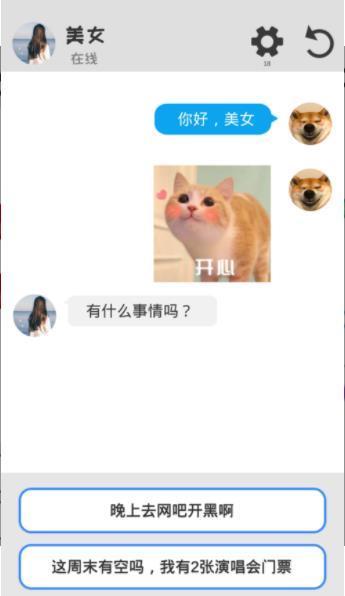 聊天模拟器而且不同的聊天话语会触发不同的聊天结果,还能让玩家更加轻松的进行各种玩法体验,你要用自己的头脑智商解决系列难关,内容丰富多彩,模拟现实生活中的对话场景,在这里,比如你对女朋友说你想出去玩,每个对话在每次聊天中都会给你两个不同的选择,喜欢的话快来下载王下载体验吧!