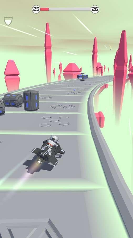 2、加入了音乐赛车的乐趣,控制着太空车在充满着障碍物的赛道上奔驰,