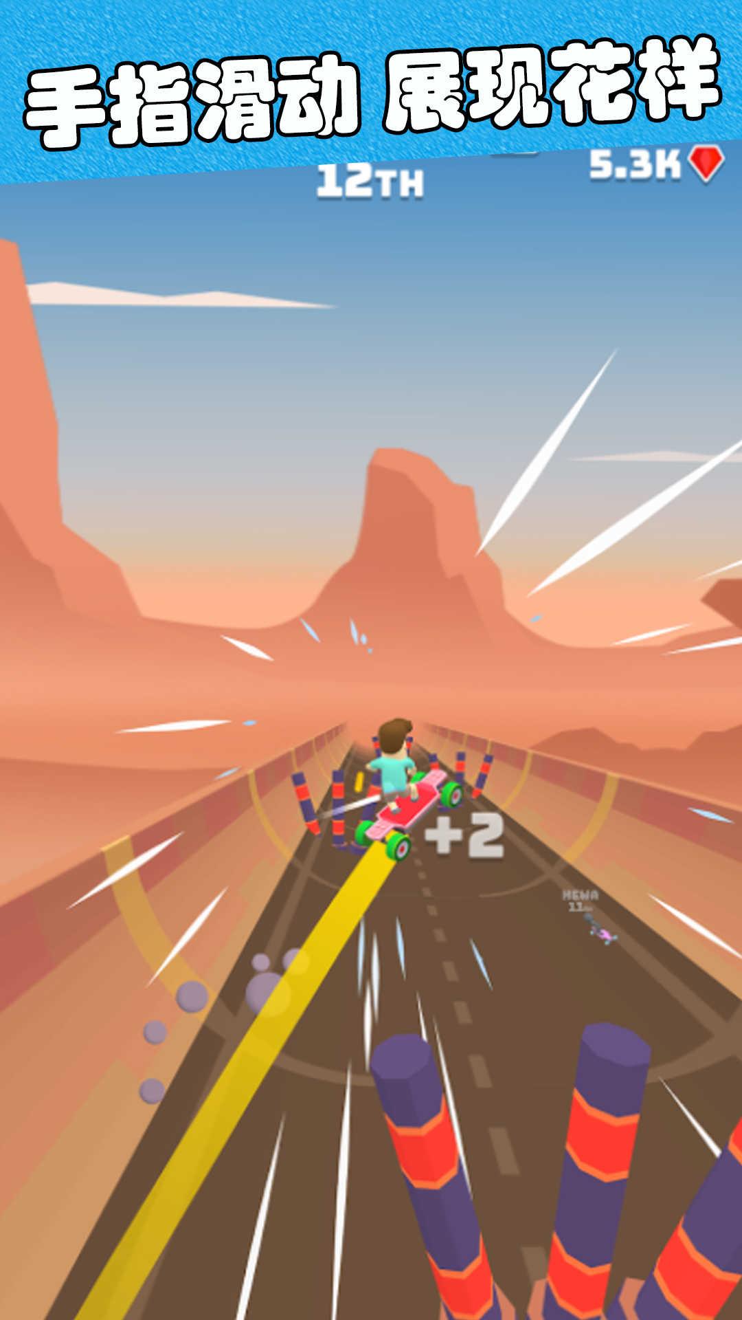 3、欢乐无比的游戏体验,展现不同的滑行激情技巧,体验刺激玩法。