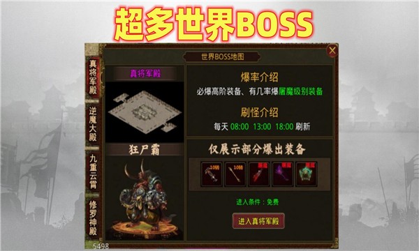 3.海量的副本挑战,每种都经过精心的设计,尽情享受刷怪打金的爽快感,书写你的霸业征途。