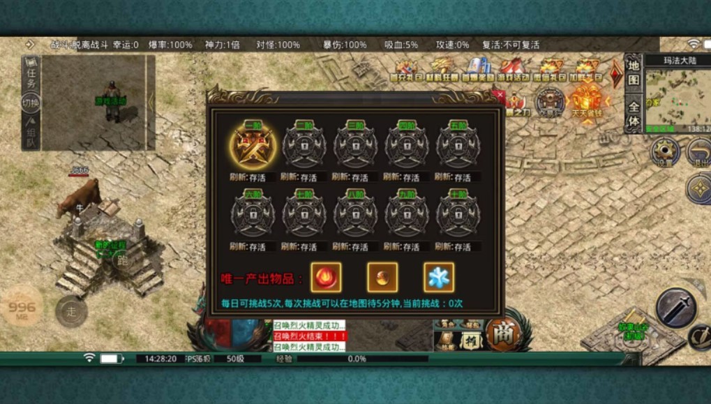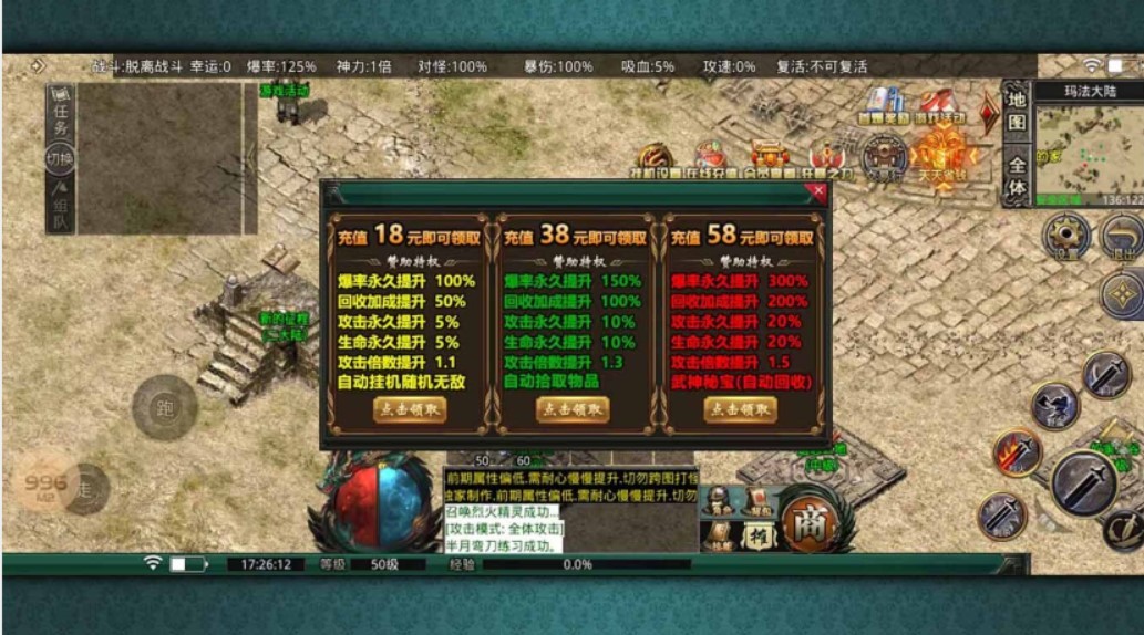 天猫复古176为玩家带来经典复古的传奇玩法,经典的画面风格,各个场景都非常的精彩,还原诸多版本的玩法,游戏内无任何的暗坑和套路,尽情地享受刀刀暴击的爽快体验,获得遍地光柱的震撼感受,书写属于你的传奇冒险旅程。 天猫复古176玩法介绍 1.散人上去优先....