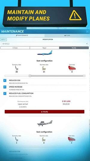 2、多样化的经营模式:玩家可以选择直达或接驳航班,调整价格和运力等参数进行运营。